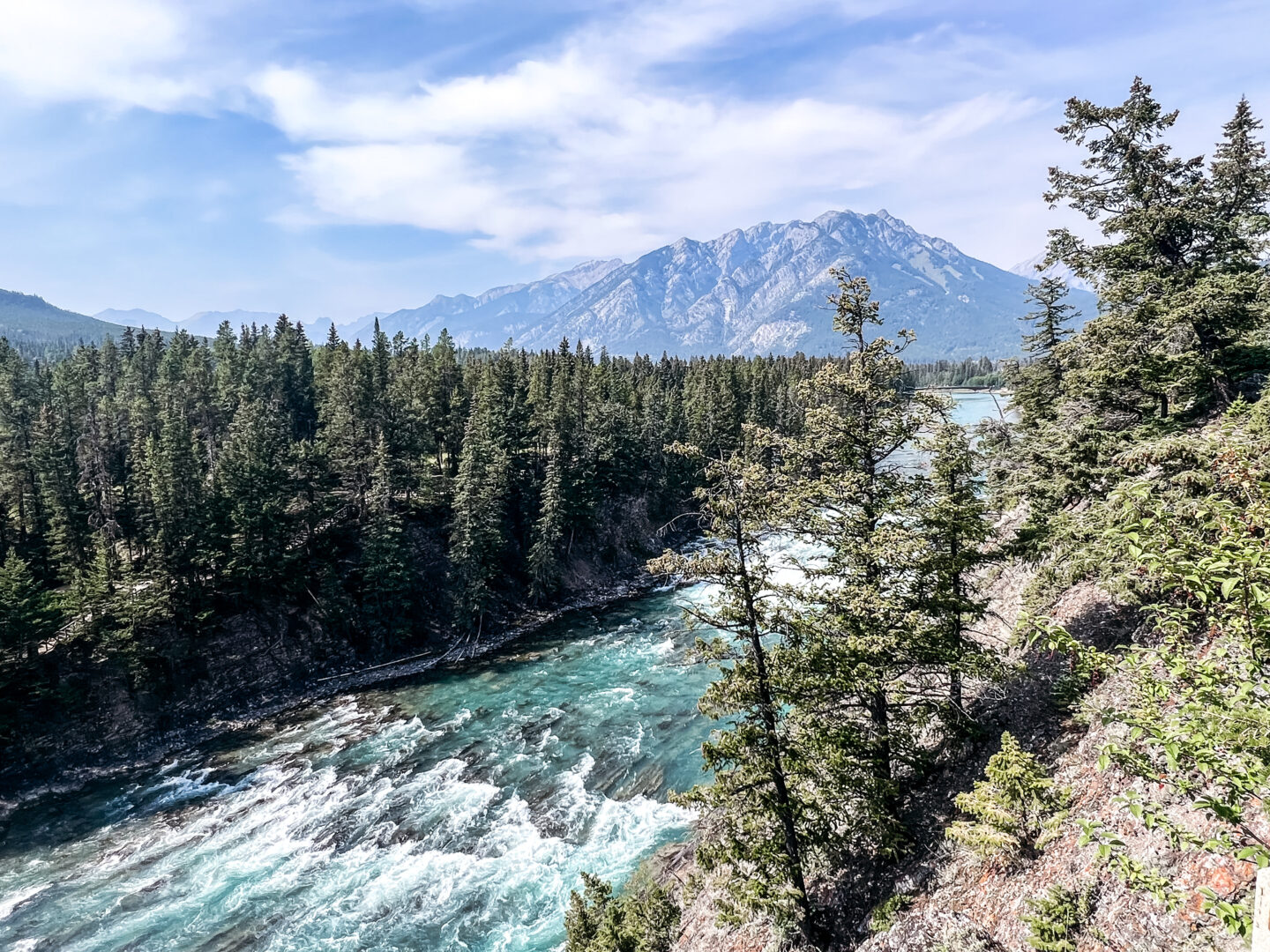 After exploring downtown Banff, head to Bow Falls to enjoy the beautiful falls and mountain views. There is a short trail that will bring you closer to the top of the waterfall. This will be one of the easiest waterfalls to access as it doesn’t require any hiking and you can enjoy the view after a few short steps from the parking lot.