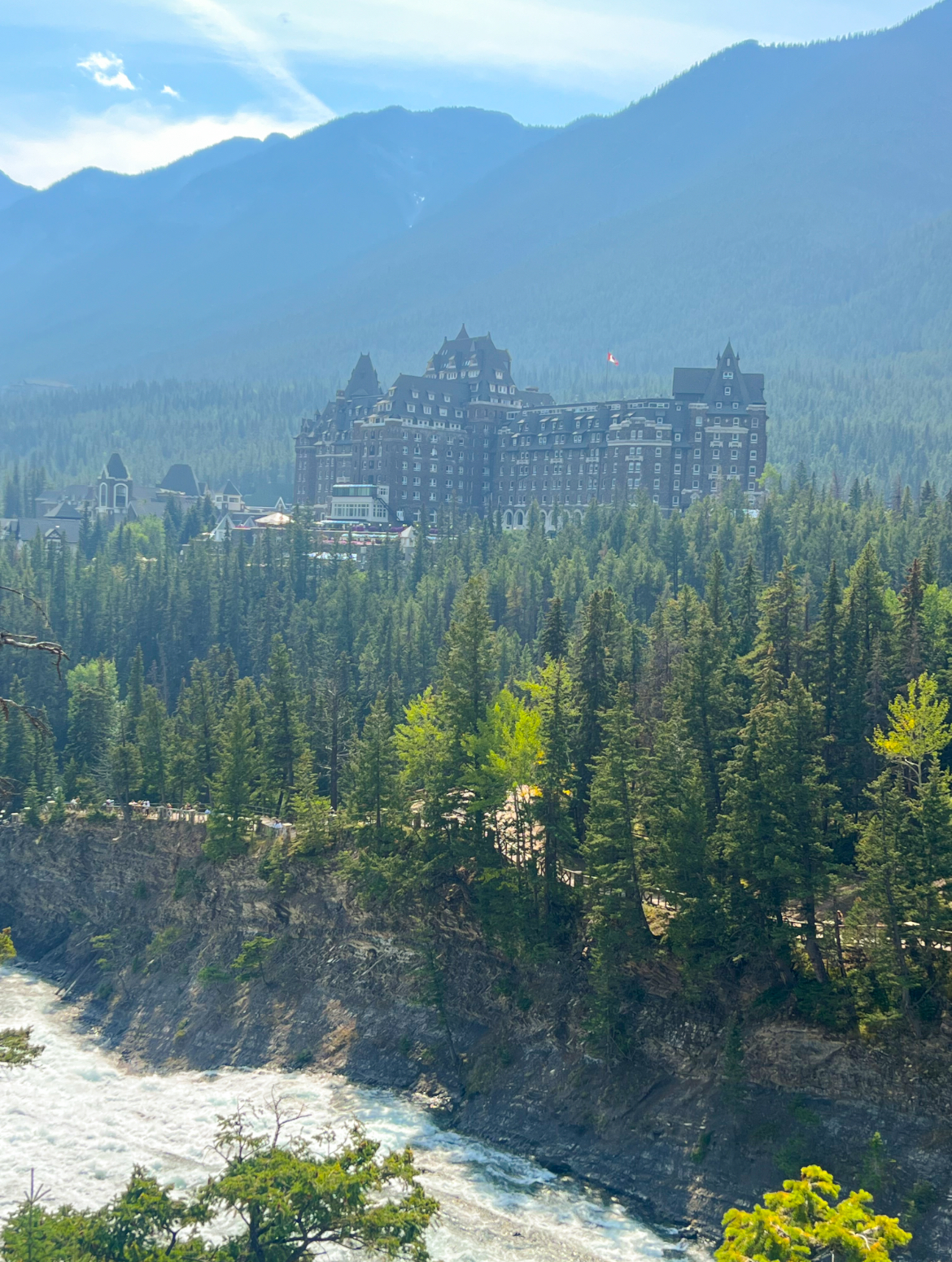 Surprise Corner is a sharp corner on a mountain road. From here, you will have great views of the Banff Springs Hotel and the Bow Falls. There is a small parking lot (less than 10 cars) for you to park in or you can walk about 15 minutes from town to the viewpoint.